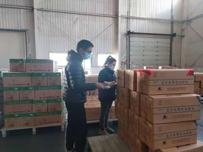 29號一早,琦總頂著巨大的壓力前往多個相關部門辦理通行證,田金茹想盡一切辦法帶領廠內司機去接應辦理通行證的大車司機。大家分頭行動,爭分奪秒,與疫情賽跑。接應司機的路上困難重重,轉了不知道多少條道路才把司機接到廠。誰都來不及訴說各自的不容易,在做好自身防護的同時,緊鑼密鼓地安排調貨、裝車、開票發(fā)貨。