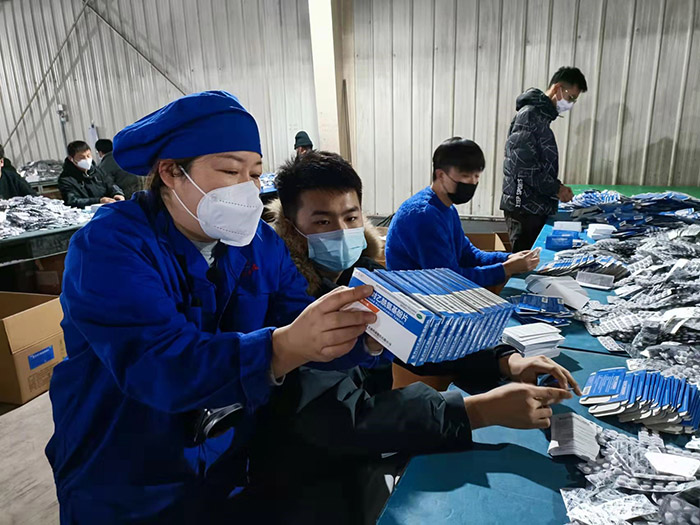 常務(wù)副總經(jīng)理王顥介紹道:“受新冠疫情影響,生產(chǎn)任務(wù)較往年更加緊張,積累的訂單也較多,尤其是抗病毒、退燒類口服固體制劑產(chǎn)品訂單劇增。為此公司科學(xué)部署,一方面協(xié)調(diào)渤海分公司部分人員來支援固體車間,同時安排天成藥業(yè)、道恩藥業(yè)后勤管理人員分時段參與包盒;另一方面調(diào)整招聘策略,擴招一批臨時包盒工,緩解生產(chǎn)壓力。”