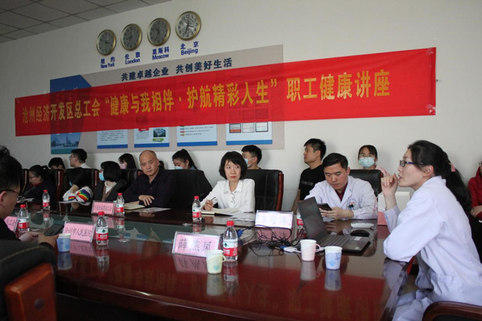 為進(jìn)一步發(fā)揮“職工健康生活室”服務(wù)職工的作用,切實響應(yīng)國務(wù)院《健康中國行動(2019-2030年)》發(fā)展戰(zhàn)略,提高廣大職工自我健康管理意識,掌握健康知識,建設(shè)健康環(huán)境,近日,公司工會聯(lián)合滄州市人民醫(yī)院特舉辦“健康與我相伴·護(hù)航精彩人生”職工健康講座活動。