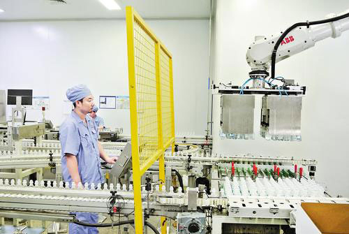 在該公司智能工廠,記者看到,數(shù)十條自動(dòng)化生產(chǎn)線高速運(yùn)轉(zhuǎn),多臺(tái)自動(dòng)引導(dǎo)輸送機(jī)器人穿梭運(yùn)輸廢料,工業(yè)相機(jī)以200幀速度掃描藥瓶,實(shí)時(shí)檢測(cè)缺陷。